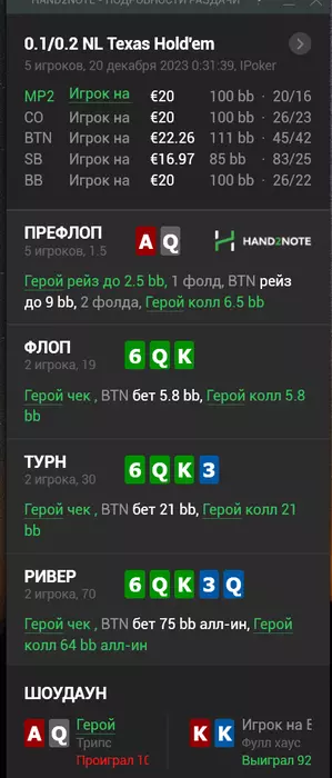 Самую крупную раздачу проиграл на нл20,хз насколько правильно сыграл тёрн,наигрыша с оппом особо не было,но показался агрорегом.