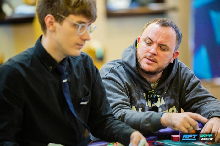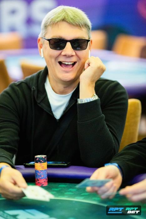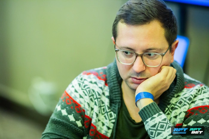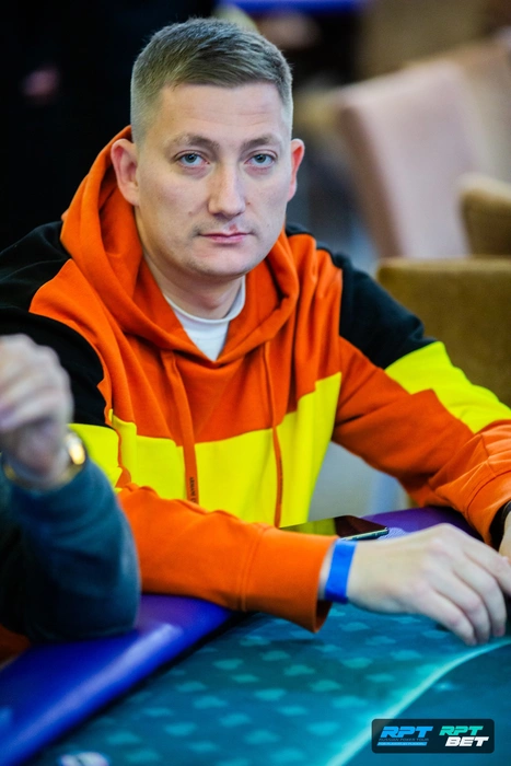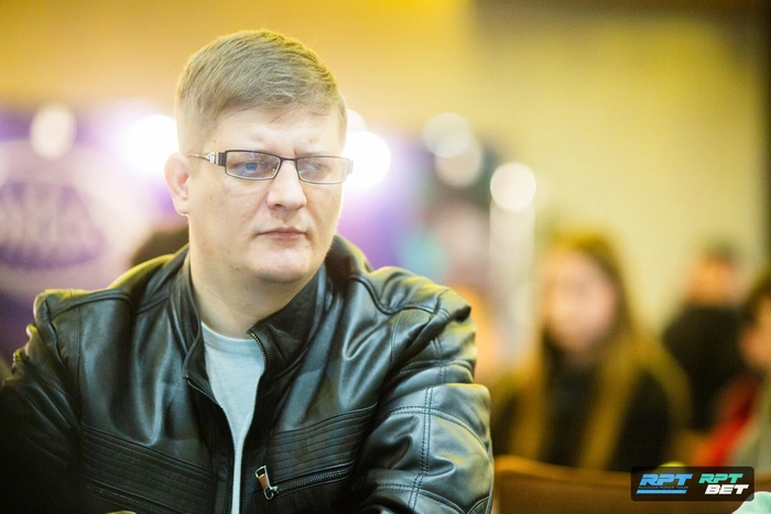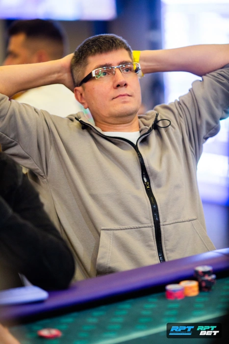 Сергей Пилюгин уже второй раз сегодня пробует штурмовать этот турнир. Почти сразу заработал прибавку к стеку в сквиз банке против Александра Авдеева. Пилюгин сквизанул 3,5к, Авдеев уравнял. На флопе Сергей продолжил ставкой 2к, терн прочекали, ривер Александр Решил залидить ставкой 5к, получил колл.