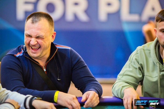 А Максим Зварский грязно с переехал Евгения Ильюкевича. Попал в даму на ривере. Хотя стек у Зварского был небольшой, для Ильюкевича это было серьзеной потерей.