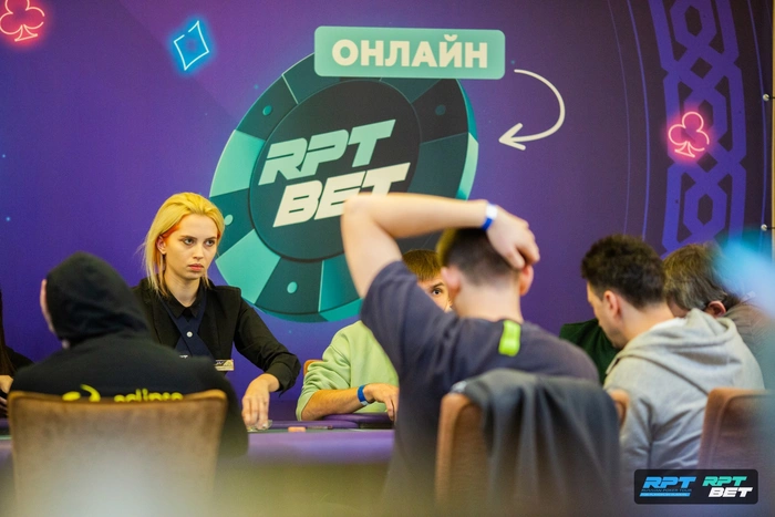 Никита Киселев покидал турнир на сильных эмоциях. За две раздачи отдал все свои фишки. Сначала открылся чуть увеличенным сайзом с , получил 3 колла. На флопе поставил продолженную и получил пуш от Дмитрия, который с флопа наловил флеш с .