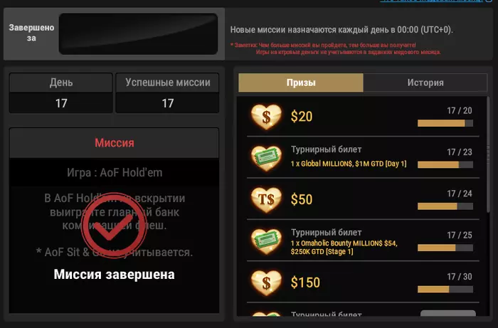 -Кстати пока ивент идет хорошо (доделаю до 25/30 и всё, ибо дальше там будет задание выиграть турнир, даже если я потрачу весь день, не факт что смогу, ICM нулевой, по омахе турниров не так много, а холдем играть не хочется, мешать 2 и 4 карты такое себе, всё бы ничего, но вот именно эта миссия почти гарантированно заруинит мне 30/30) Ну в любом случае даже за 25/30 бонусы очень не плохие, хоть там и турнирные 50$ я их попробую конвертировать как хоть немного наберусь опыта в омахе и полезу по фану микротурики поиграю пока все турнирные не переведу, быть может даже удастся что-нибудь затащить
