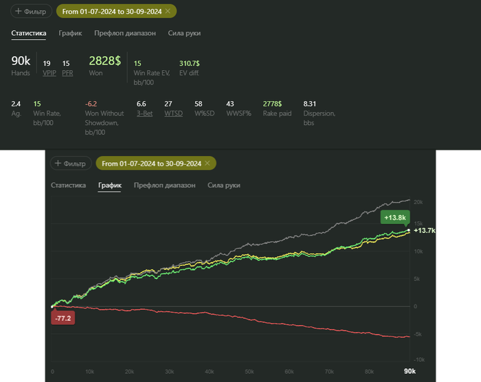 К концу летнего сезона дела мои шли неплохо. Сентябрь я уже практически только играл. Три месяца своего легендарного марафона с 80$ я откатал таким образом: