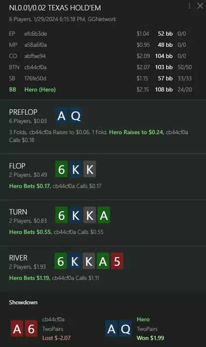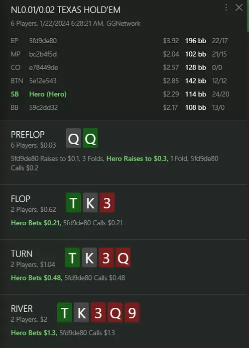 repbel666 @ 29.01.24Диапазон префлоп колла оппонента я вижу таким