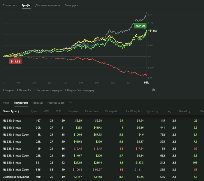 Навихідних грав як якийсь ідіот,тільтанув від ігри,що зі мною не було досить давно,видно я за літо свій емоційний стан підшатав дуже сильно,цей тиждень постараюсь зіграти більш професійно,через нехватку гри інколи на 888 підключив Старзи,граю 2 рума тепер