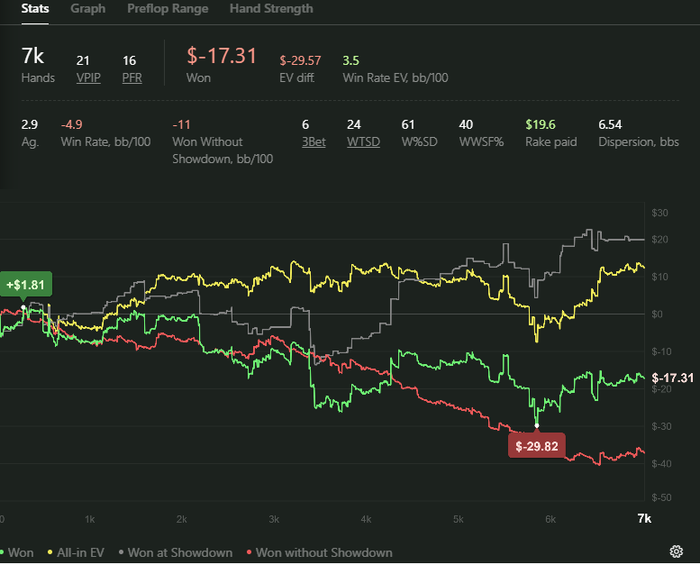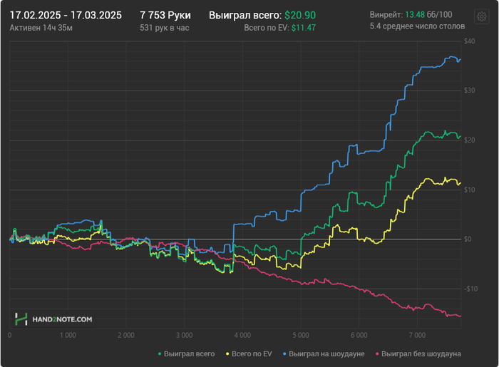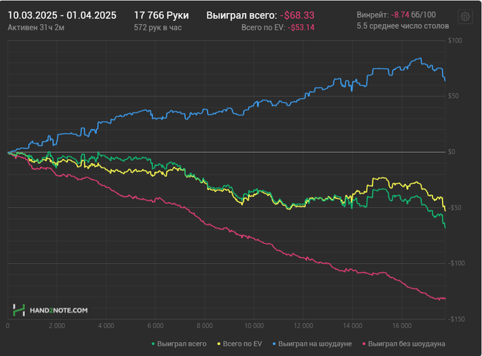 Была мотивация катать, пока на редстаре не объяснили, что такое покер :D Немного поймал тильт, садился за стол и была уверенность, что сессия в минус и из-за этого руки опускались и просто катал в надежде, что это пройдет( В итоге закатал почти 17би и вернул рейком примерно 7би.