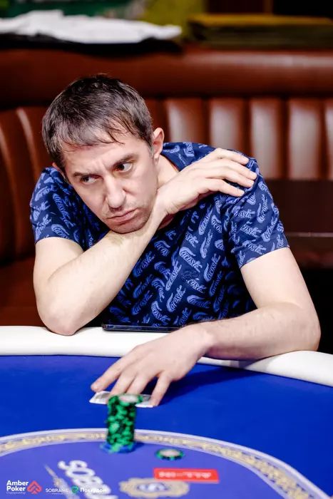 Юрий Саяпин (на фото) открылся и заколлировал олл-ин 24,700 Филиппа Шванба. Монетка в пользу Саяпина. > . Доска: ✖️✖️. Саяпин - 212,000.