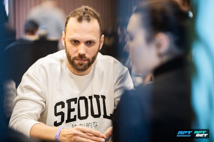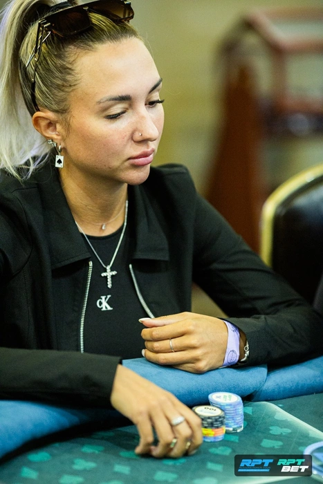 Баббл закончился довольно быстро. За две раздачи расстаял стек Дмитрия Колодовского. Сначала закрыл олл-ин Раисы Бубникович с и даже наловил сет на флопе против ее , но терном закрылся трефовый флеш.