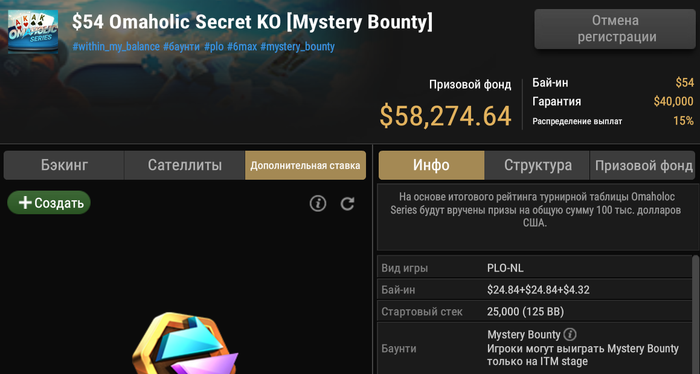У турнира интересные призовые, мистери баунти начинают выплачивать только в итм. Я в итм выбил двоих (в итм была жуткая лудомания), выпало $490 и $87, а могло два по $36 💩