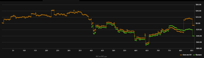 3011 рук. ITM нулевый😹 Единственное, что получается - это саты. За счет обналичивания выигранных билетов вышел в слабый минус