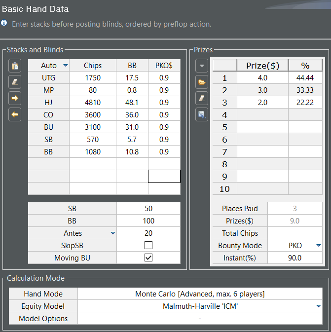 Первая стадия тоже считается в HRC можно посчитать как фризаут(3 призовых, 18 человек, активный стол 5 человек), и отдельно в чип ев посчитать, и играть что-то среднее.