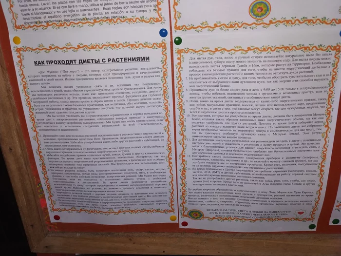 Подытожить хочу тем, что многое из того, что они практикуют кажется абсолютно странным (например, все диетерас ходят с зонтиками, защищаясь от солнца), но они там в центре являются практиками и фокусом является исцеление людей. Какой процент в исцелении (а там у них неплохой послужной список) играет природа, отключение от инфошума, а какой все эти диеты и иные танцы с бубном, история умалчивает.