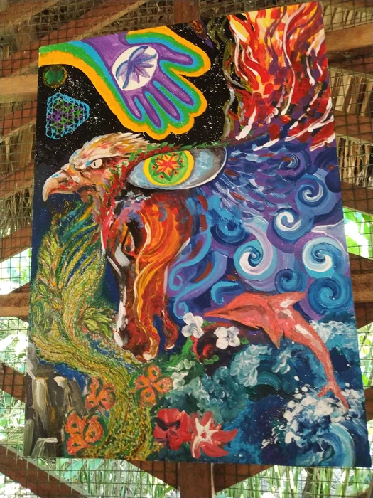 А вот картина одной очень талантливой девочки, которая приехала лечить в центр рак мозга.