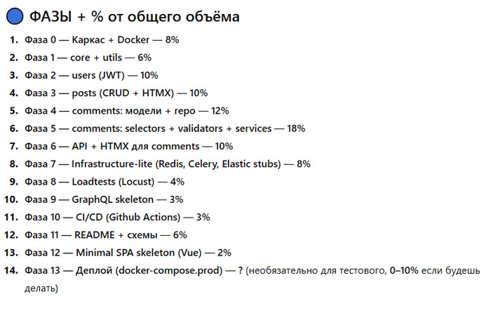 Сегодня реализовал фазы 0, 1 и 2. Завтра хочу успеть 3-4, и, возможно, попробую закрыть ещё и 5.