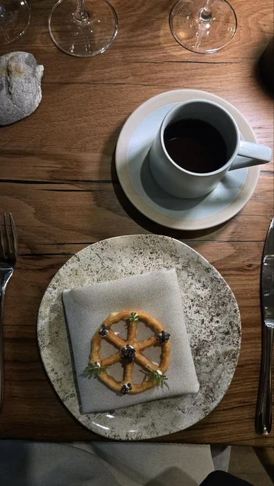 Первый курс: Баурсак с черной икрой и чаем из сморчков.
