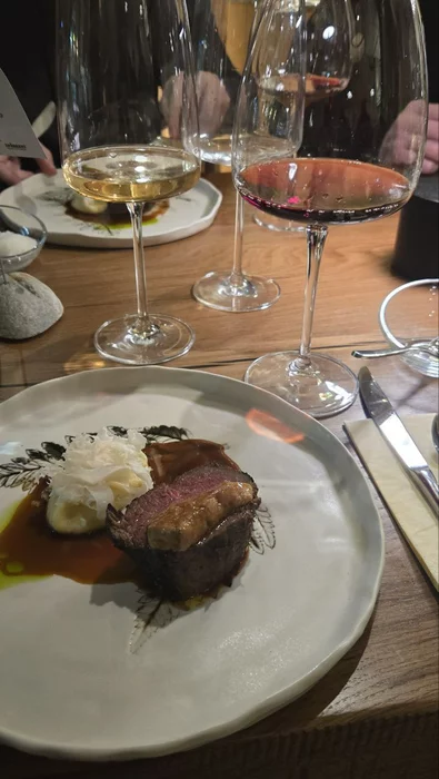Четвертый курс: Фили миньон из говядины, с пюре из пастернака. И фуагрой. В сопровождении красного полусухого Бардолини Классико.