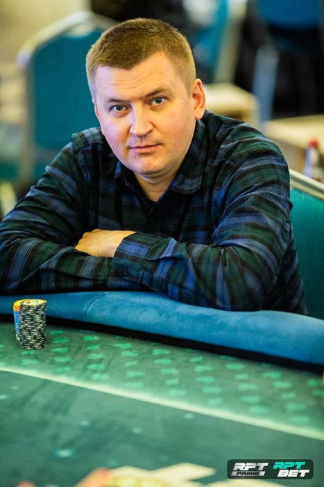 Сначала на 4бб съездил в Сергей Бредникович. Виталий Олексин, хоть и потерял немного фишек, но уже возмущен, что не может выиграть выставление.
