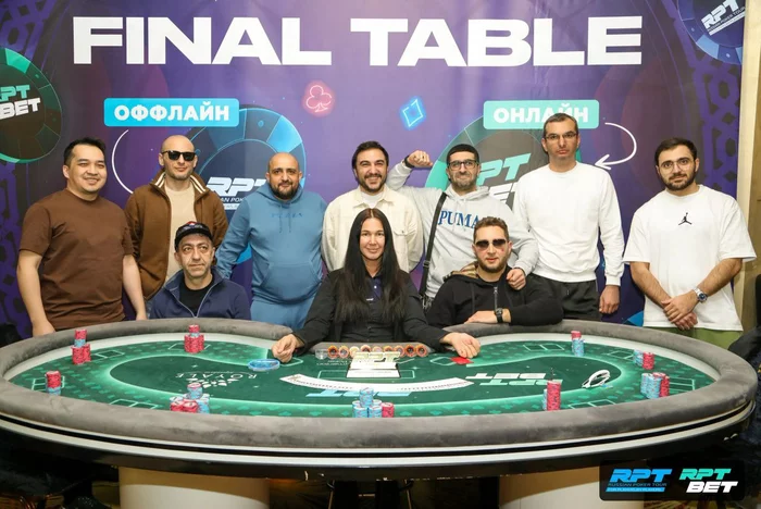 Хачик Григорян первым покидает финальный стол. Майкл Балабекян с LJ открылся 150к , Геворг Амазярян 3бет 300к, Хачик Григорян 4бет пуш 415к, Майкл пас, Геворг кол.