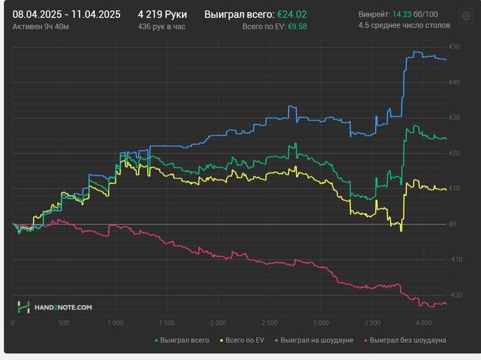 feenords @ 20.04.25Прошло около двух недель с возвращения обратно на ipoker. И началось опять что то непонятное. Я не буду тут постить графики или все кулера, какие происходят, но в такие моменты и реально начинаешь верить в какую то подкрутку. За две недели закатал в районе 20 би на нл4, попахивает бедой. Думаю половину залил со словами "да пошел ты нахуй, как тебе доезжает?" Бр скатился опять где то до 220 евро. Как быть не понятно. Так же очень сильно начал лагать этот ебучий редстар. Очень часто вылетают столы, вылазит бывает иногда какая то ошибка. Переустановка помогает, но потом опять начинается эта шляпа. Я не особо шарю во всех этих моментах, но может быть конечно причиной слабый ноут, но уж не настолько он у меня корявый чтобы не тянуть приложение редстара.