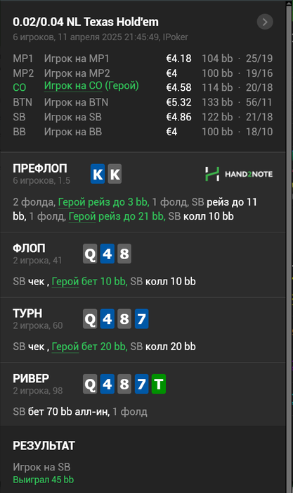 Apollo32, раздачи пробую разбирать во флопзиле, но до конца пока с этим софтом не разобрался, правильно ли делаю или нет. По поводу "да пошел ты нахуй" все верно, это все тильт. По себе знаю, очень неприятно воспринимаю все эти переезды снизу, хоть и игра идёт на копейки. Хорошо что хоть на лимиты выше не иду отмазывать, как это было раньше. Так же не могу заставить себя фолдить против фишей, где уже понятно что проиграл