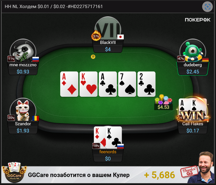 Зашел сегодня на покерок, обнаружил там 7 долларов. Решил сыграть нл2. И тут случилось вот это