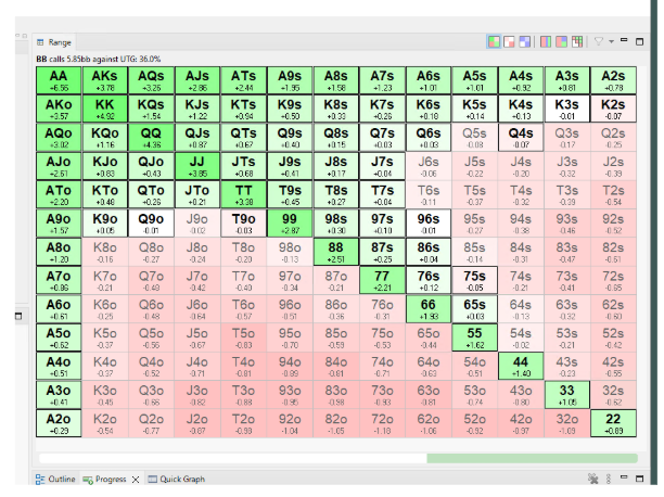 С виду простая раздача, но мне было интересно показать вам разницу диапазонов в зависимости от стадии турнира.