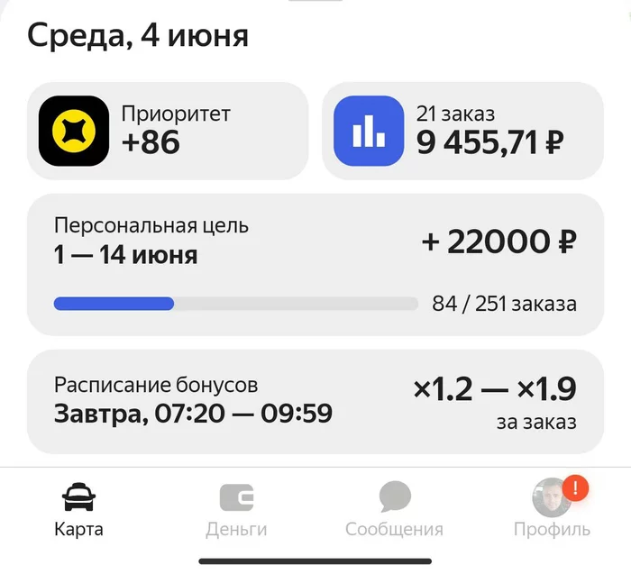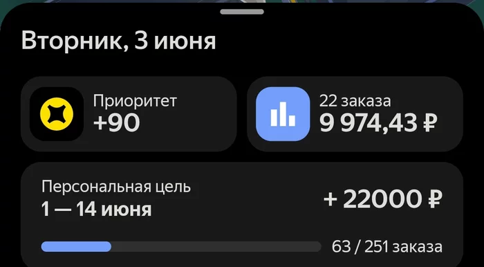 Отработал смену. Утро опять сонное, еле заставил себя встать с кровати. Быстро собрался и вышел на линию в 07-30. Сразу несколько коротких заказов и отправился "по лужам", где удалось за 3 часа сделать 4к. Попил кофе и принялся ждать заказы. Весь город без кэфов, а говорят что уже сезон. Или нет. В итоге, подрубаю пониженные тарифы, чтобы не стоять на месте и удается сделать много коротких и дешевых заказов.