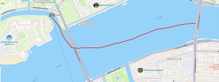 Времени остается полтора часа. Примерно прикидываю скорость и понимаю что нужно ускоряться. Не успеваю. Сил вообще нет. О технике гребли давно забыл. Гребу просто как могу, главное не останавливаться. Дохожу до Литейного моста, около Финлядского вокзала. Времени остается около 25 минут. Не успеваю.