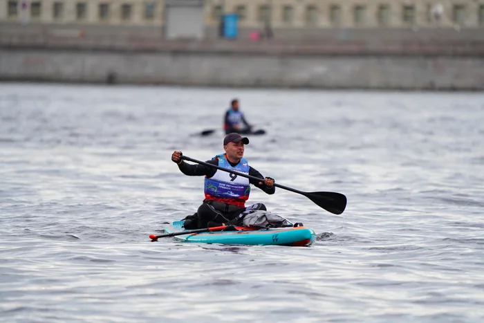 От Вантового моста следующий чек-поинт для меня - Володарский мост. Весь этот участок - мои родные края, где я родился и рос. Проплываю мимо круизных кораблей, гранитной набережной. Волна сильная, бьет с двух сторон. Меняю стойки с колен и обратно. Ноги уже не слушаются. Каждое движение дается в тягость. Гребу, гребу, гребу...