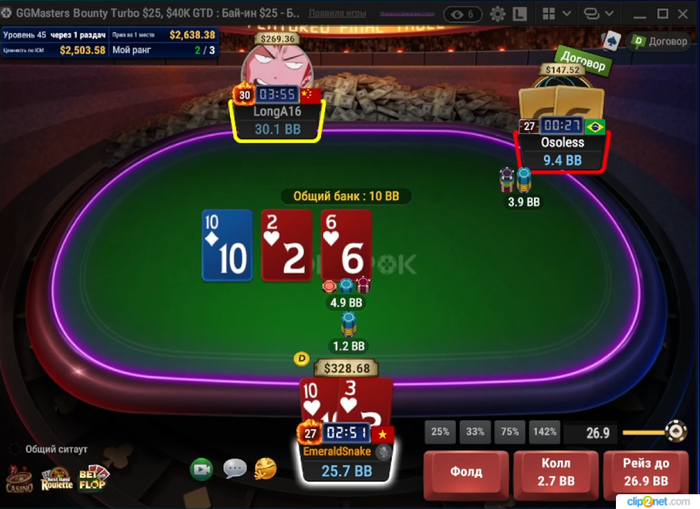 Рассмотрим эту раздачу дальше, тем более флоп открылся очень хороший