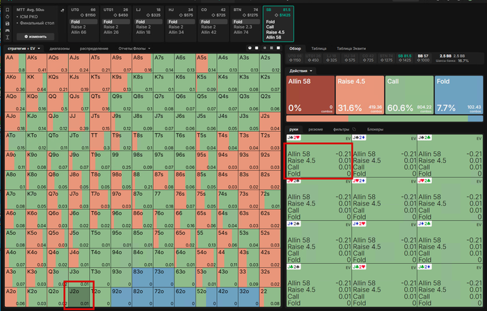 Визард для баланса нашу руку играет комплитом в 100% хоть ЕВ комплита и рейза одинаковое... я тут буду рейзить абсолютно весь низ офсьютных рук. тем более в фиша!🧐