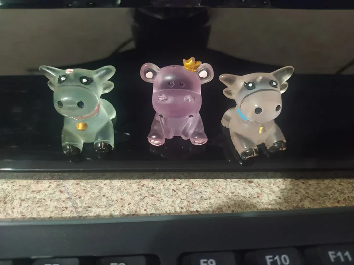 У меня на мониторе сидели два игрушечных бычка, которые дочка подарила.