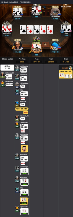 А где хитал, там получалось что-то типа 69s BB vs 99 MP action on board 692 и выставление вмертвую.