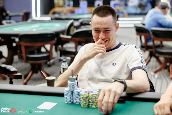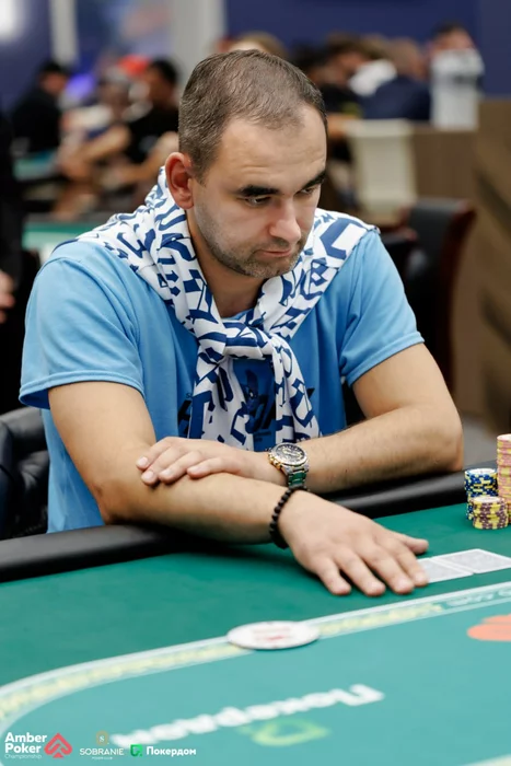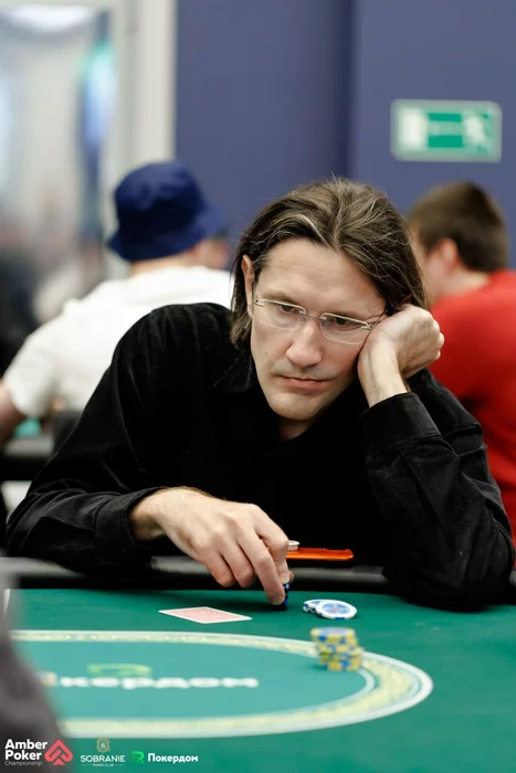 Дербышев Вячеслав за две раздачи проиграл весь свой стек.
