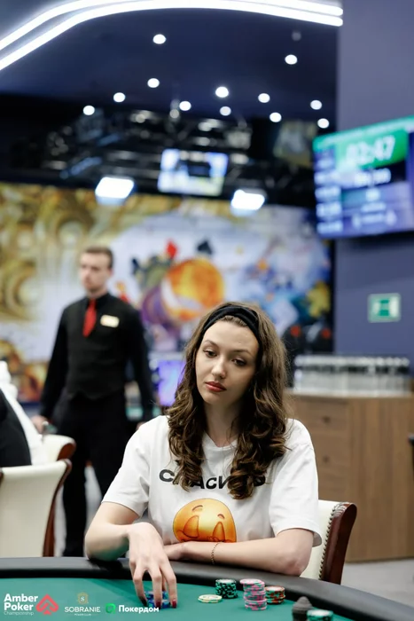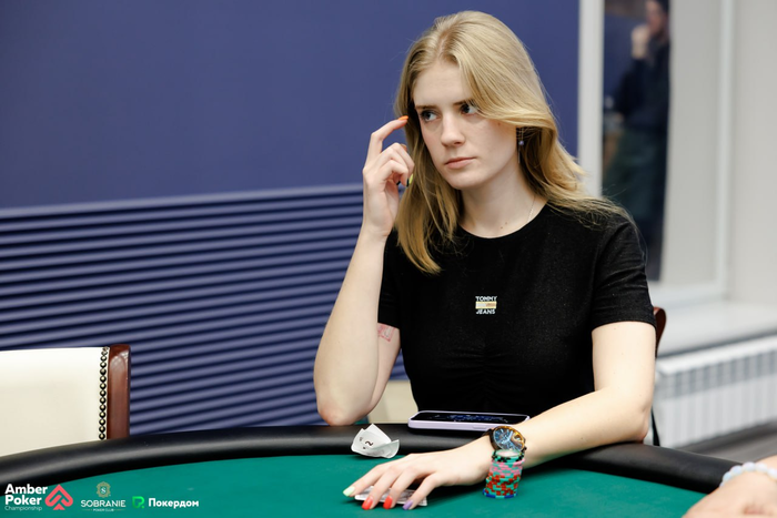 Звонкая не стала ставить с-бет - чек. Кожевников - бет 5000, Унанян - колл, Анастасия - пас.