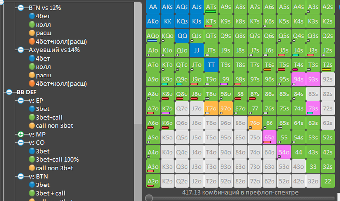 Нарисовал тут хуйни, представим класик ситуэйшн BU open vs BB call. Сверху банк снизу сайзинг классический