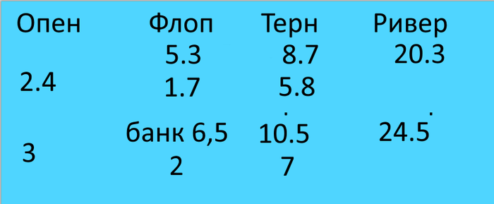 флоп 1/3 терн 2/3 ну и ривер как хотите уже, но факт что здесь нахаляву можно намутить лишние 3 бб.