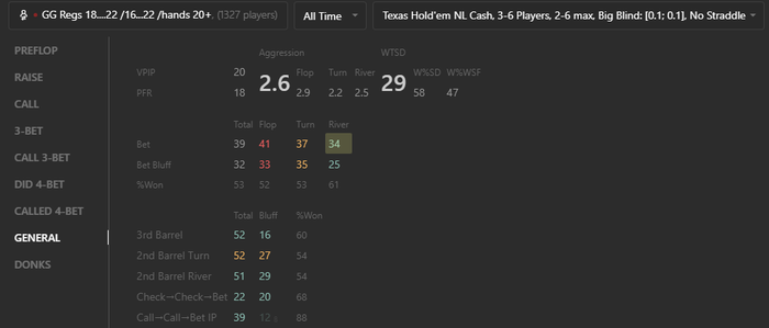 У драйвхада есть уникальный стат TAP (true aggression percent), который по их заявляниям лучше отражает агрессию оппа. Стоит приглядеться к нему, вполне возможно он действительно лучше и может заменить связку AGG%+WWSF или WWSF rating или bet% по улицам или что там еще.