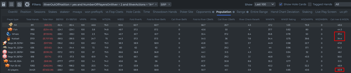 Реги валятся как шишки с елки. Но, фиши колят почти по GTO. А с фишами самый частый риверплей, именно они ведь чаще всего туда добираются. Их влияние на стату ривера очень высоко. Реги еще на префлопе отпадут.
