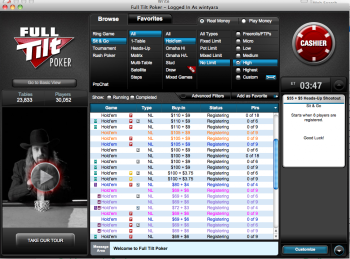 Хотел сейчас засесть за настольным компом с большим моником полноценно погриндить марафон - фиг. Почему-то фуллтилт закрыл для меня гипер турбо снг нужного лимита! Сначала из лобби пропали 6-максы, остались только матриксы сотки, но 9-ки были. Через несколько минут пропали и девятки. Дело явно не в фильтрах - я их не менял, да и когда отключил вообще все фильтры, то все-равно та же картина.
