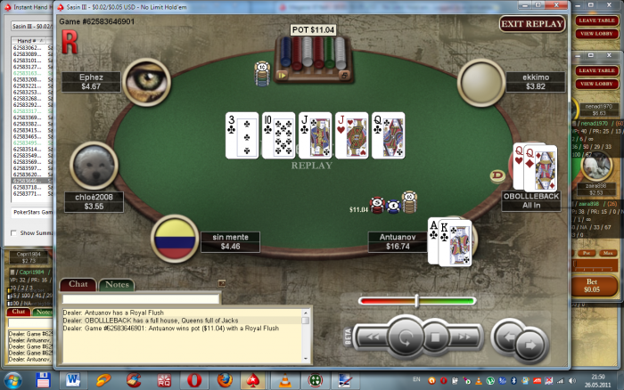 Poker Stars $0.02/$0.05 No Limit Hold'em - 6 players -