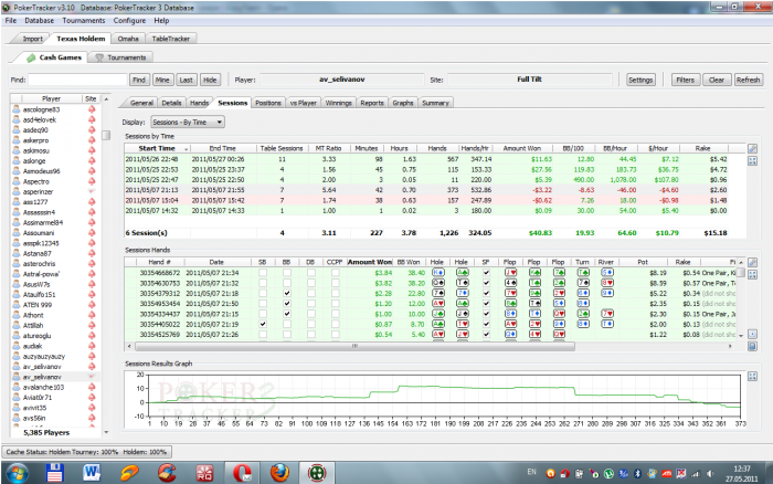 В последнее время немного изменил тактику катки.Стал играть 9 столов (раньше 12),ошутимо расширил свой диапазон рейза,совсем чуть-чуть кола. Играю более вдумчиво, больше анализирую статы оппов...Такая игра дает свой результат..К сожадению, из-за того,что странно работает трекер на компе и то, что я играю с разных компов, статистику выложить не получается, но меня мои результаты за последние 1,5 недели устраивают