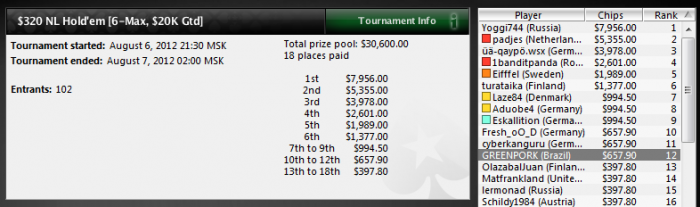 Но если честно расстроен вторым местом, практически без вскрытий отыграл всю финалку поддерживая топ-1 стек, но потом просто катастрофически не складывалось в оллинах против выигравшего поляка( Сначала в 3 максе A10 < A9, QQ < AJ, 66 < AK Потом в ХА за победу 55 < 88, положили пятерку на флопе, но ривером ему закрыли гатшот, и финальный A8 < 97