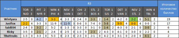 Перед началом турнира будет проведён драфт. По его итогам у каждого будет по 17 игроков(3 тройки нападающих, 3 пары защитников, 2 вратаря), которые и будут, приносит игроку очки. Так как это второй мой турнир по НХЛ, порядковые номера выбора будут зависеть от вашего итогового места в таблице регулярного сезона 1 турнира. Если к нам присоединяются новые игроки, то они будут в середине списка. Пример порядка выбора( на 2 кругах будет понятно)