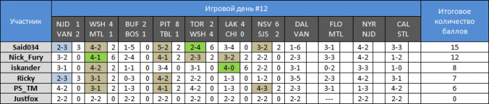 Пока на 12 тур прислали только PS_TM и Джаст. Ребята досылайте.