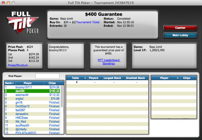 30/60 снова не по БР, буду гриндить 8/16 - 15/30, хотя по итогам дня уже и 20/40 можно. Сегодня за сессию выиграл около 80ББ у литовца одного, преимущественно в ХА, при этом часть профита ушла хорошему немцу silmaster, в ожидании фишей.