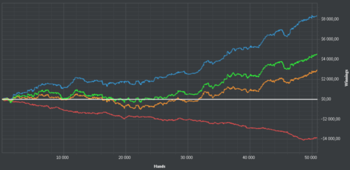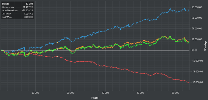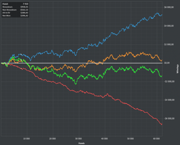 Теперь по сути вопроса. Ты вот сидишь и думаешь - здесь можно так сыграть. Здесь можно по-другому сыграть! А вот может так.... А вот может - то-се. В итоге - ты фокусируешься на НЕЗНАЧИМЫХ вещах. Вернее как - незначиным - вторичных. А те моменты - когда у тебя так сильно по пизде идет красная - ты даже не понимаешь, что тут можно о чем-то думать - в этих сдачах.