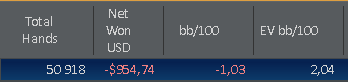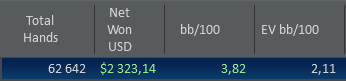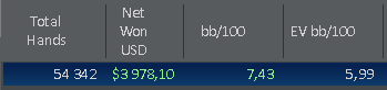 отчет за май: В связи с хорошим результатом, наверное, стоило бы написать пару слов, но я немного расстроен тем, что не уделил работе над игрой запланированное вначале месяца время. Поэтому, считаю что гордиться нечем - диспа во всей красоте. Из положительного, пожалуй отмечу, что в этом месяце посмотрел больше всего водов. Но, снова таки, не записал ни одной пометки по интересным раздачам и ситуациям, за что поставлю себе минус. Остаеться надеятся только на подсознание, что возможно, когда то в нужный момент, увиденное мной, в виде "неосознанной компетенции по Тендлеру" пригодиться за столами...в общем как то так...