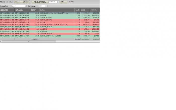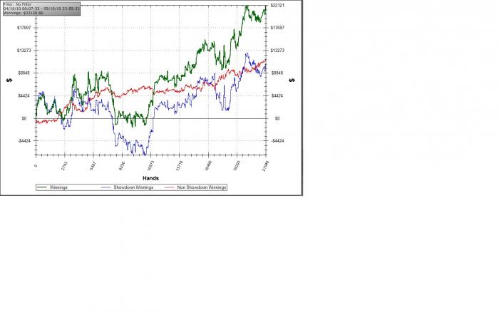 Марафон закончился. Месяц трудно назвать провальным, хоть мне и не удалось выполнить главную цель. 22к в месяц совсем не плохо. Я убежден, что мой доход в час реально выше чем 180 долларов в час. Этот месяц выдался действительно сложным для меня, я не смог обыграть практически ни одного толстого фиша на 5-10, просто так сложилось. В бушующем, когда дисперсия будет на моей стороне я смогу отыграть этот минус, а еще лучше чтобы все вернулось на 10-20. Я потихонечку начинаю играть 10-20, пока сыграл всего 500 раздач, посмотрим что из этого выйдет. Из плюсов можно выделить 122 часа за месяц, я никогда не играл так много. Теперь я думаю о том, что если отыграть 150 часов с винрейтом 300 долларов в час, то в месяц можно зарабатывать 45к. К этому и буду стремиться. Я так и не решил ехать мне в Вегас или нет. Сроки уже поджимают и надо определяться. В течение 2 дней напишу об этом на главной странице. Если я не поеду, то я долго не буду писать на этом форуме. Я и раньше не особо общался на форумах, но теперь у меня совсем нет желания. Происходит это из-за кучки людей, которые устраивают конфликты, радуются чужим неудачам и т.д. Самоутверждаются за чужой счет. Мне сразу вспоминается марафон Саши Кострицыина на cgm, когда он с 1к сделал 100к меньше чем за месяц., я там тоже ничего не писал, только читал. Так вот завистники набросились на него за то, что он основной профит получил с одного турнира, якобы он не смог бы этого сделать играя только кеш. Казалось бы какая им разница? Видимо им было завидно, что они за год не могут заработать такую сумму, а Саша пришел и сделал это меньше чем за месяц. Саша тогда ушел с форума. Я тоже прекращаю свое общение на форуме т.к. это неизбежно ведет к конфликтам, а мне не хочется в жизни получать дополнительные отрицательные эмоции. Всем удачи и успехов!