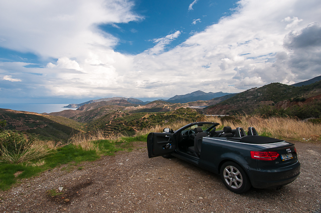 На следующий день мы планировали взять тачку и поехать кататься по Криту, но чето протупили, в контору не успели до закрытия, а в Греции это отдельная тема, там в 2 часа уже никто не работает, сиеста... по идеи вечером все должно открываться снова, но это же греки.. все знают, какие они трудолюбивые). Ну короче на 6-й день мы выполнили миссию и в наше распоряжение на 3 дня попал кабриолет Audi A3: