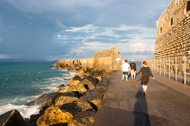 Съездили в сталицу острова - Ираклион, там в принципе интересного ниче нет, но наше внимание привлек мол, по которому можно было прогуляться, конца его не видно за поворотом, по карте у меня там был просто обозначен маяк в конце, но удивило то, что довольно много людей целенаправленно шли в ту сторону, ну и мы решили прогуляться. Как оказалось все эти люди просто гуляли и в конце действительно кроме маяка ниче нет, даже море не видно толком из-за стены. Это мы москвичи привыкли, что если человек идет, то значит он движется в какое-то конкретное место с конкретной целью... но чтобы просто гулять :